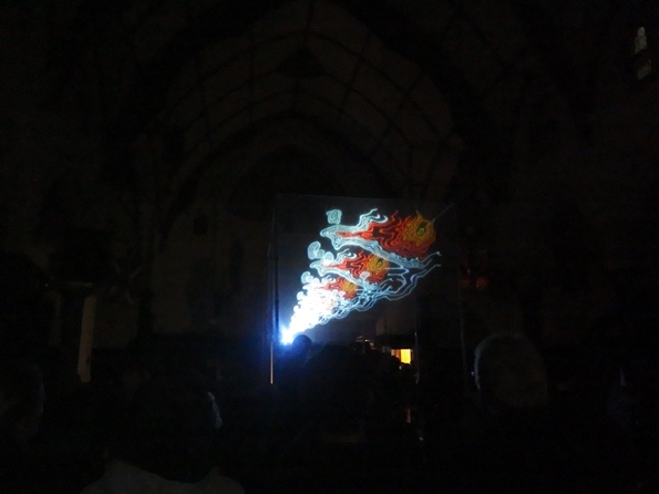 そして音楽パフォーマンスもそこここで。写真だとテレビ画面みたいにも見えますが実際に人がいます。聖ポール大聖堂でのオールナイト立ち替わり入れ替わりコンサートもちょっとだけ聴きました。もっとゆっくりできたら2回くらいちゃんと聴きにいったのですが。