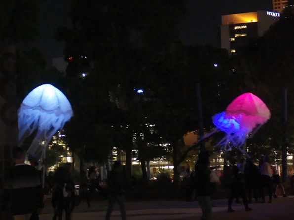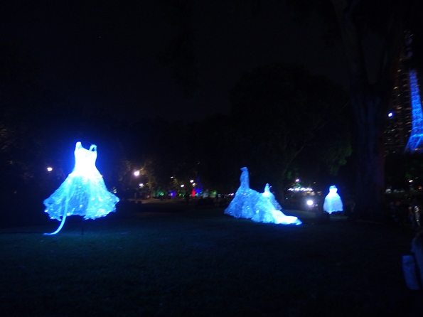 2枚目はBirrarung Marrで遭遇したクラゲたち、3枚目はヤラ川の南側の庭園にあった光のドレス。色々な色に変わるのですが結局白のときが一番綺麗に見えたのがちょっと不思議。色彩なのかデザインなのか、はたまたイメージなのか。