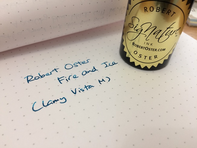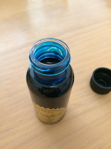 じゃーん。Robert Osterのインクは背の高い50mLのプラスチックボトルに入ってます。蓋にはカラーサンプルとしてちょこっと色が塗ってあります。