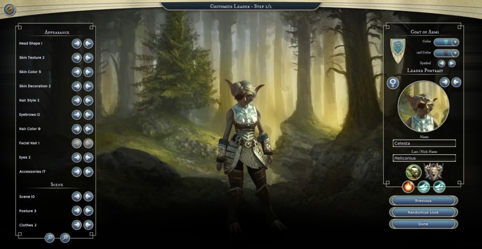 Age of Wonders 3のキャンペーンゲームはそれぞれのステージを決まったキャラクターでプレイしますがランダムマップやオンラインプレイ、その他モードは既成のキャラクター(キャンペーン登場リーダー全員)や自分で作ったリーダーで遊ぶことができます。