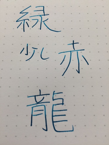 ラミーの中字でふくよかに滲むのでこういうのが好きならいいのですが、字幅が細くてもグラデーションはきれいに出るようなのでもっと上品なすらっとした字でこの色を使いたいと私は思う。