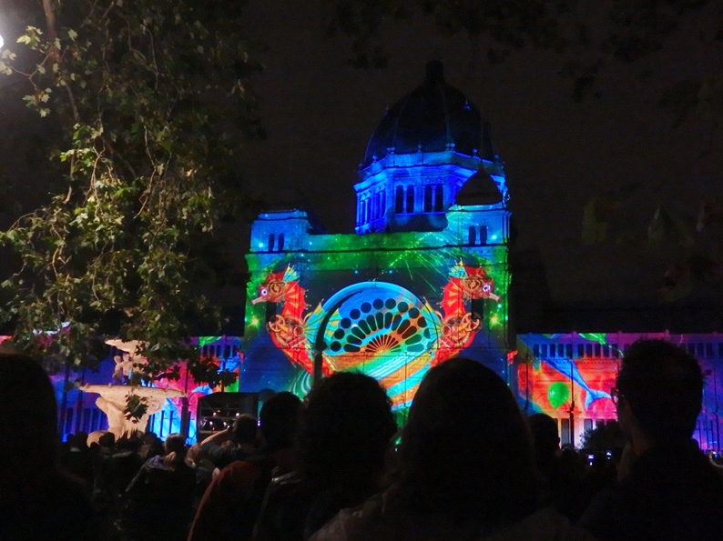 National Gallery of VIctoriaのプロジェクションマッピングは中でやってるViktor & Rolfの展示のプレビュー動画的な映像でした。ちょうどトラムがそこの角曲がったとこなので最後に行った(午前1時くらい)のですがもっと時間に余裕を持って中もみたかった。左の写真で映ってるのはバレエシューズを履いた足なのですがバレエ衣装もあったのかな。展示は今週終わりなのでほんと惜しまれる。