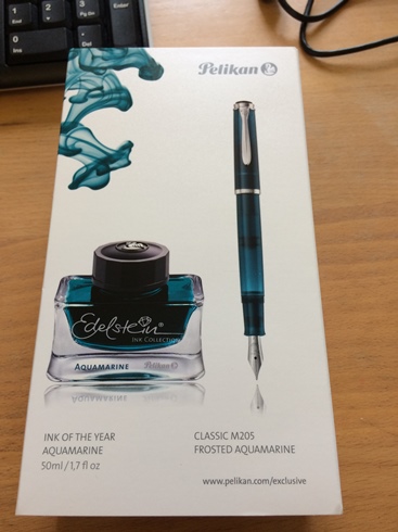 ペリカンのM205アクアマリン+エーデルシュタイン「アクアマリン」インクのセットです。シンガポールのOverjoyedで購入。
