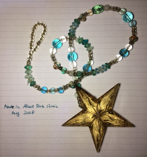 ちなみに私が3回目の入院で特に気に入ってたのがビーズクラフトのグループ。今でも一つ作品飾ってます。あと最初の入院ではティーン病棟でまた特別色々やったのでそれは今もほぼ全部とってあります。というか今色々思い出して写真撮ってきたのでアップしちゃう。