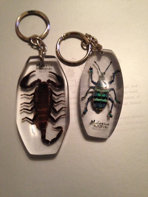 DVD屋さんで見つけた三国志映画DVD、バタフライガーデンで売ってた虫標本キーホルダー、そしてセントラルマーケットで買った幾何学模様。