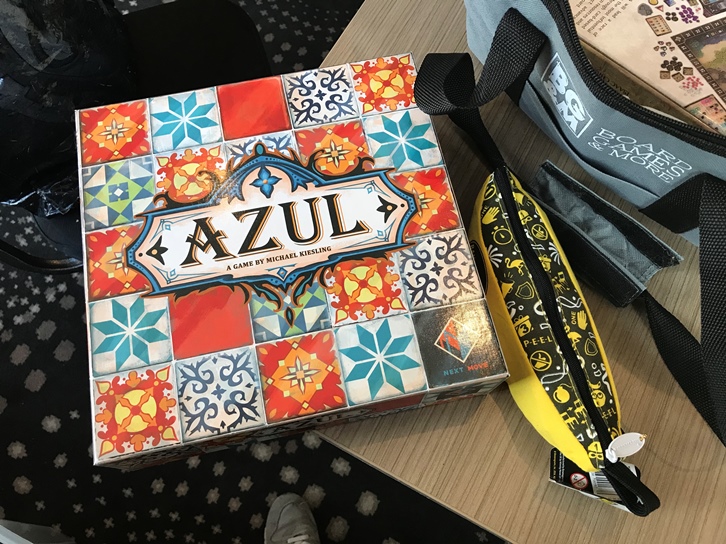 最初遊んだのがAzulというゲーム。これは実はシティなんかをぶらぶらしててふと目に止まって以来気になってたのですがたまたま友達のパートナーが件のセールで入手したラッキー。