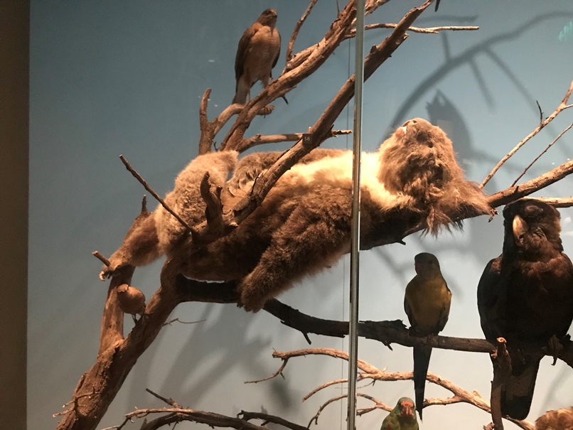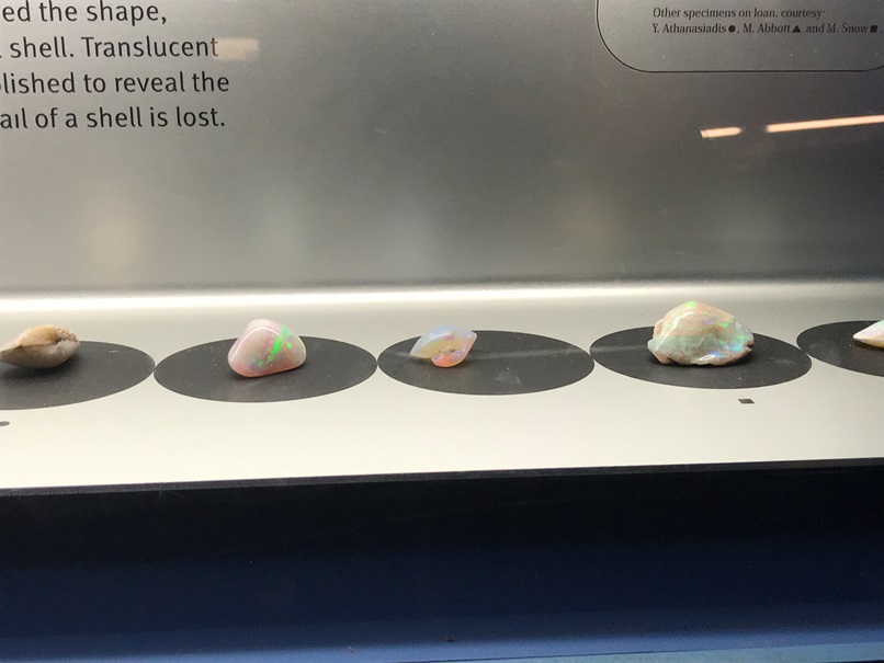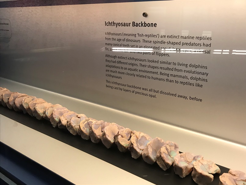 原住民文化や地理的に近い太平洋の色んな民族の文化に大きくスペースをとって色々紹介してたり、それからオパールに関する展示も力が入ってました。写真2枚目はオパール化した貝の化石、そして3枚目はなんとイクチオサウルス(海の恐竜)の背骨のなかがオパール化したもの。(私は高い金太郎飴と言いましたが母が描写した栗羊羹の方が的確ですね)