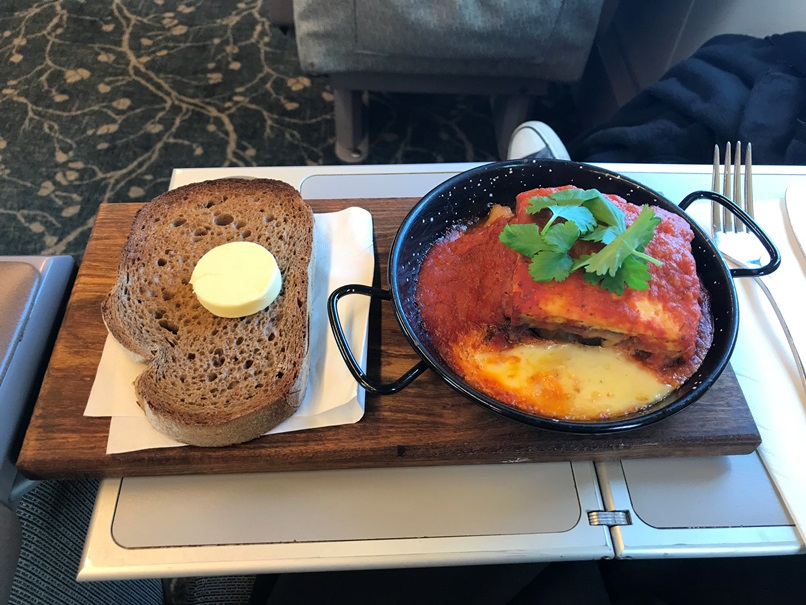 写真は昼食のムサカ。パンはSourdoughです。今回食べたなかで一番でした。