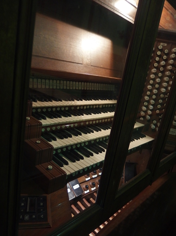 このオルガン、火事だったり改修だったりの歴史の中で実は2つのオルガンを一つにしてしまったそうです。電子制御部分があったりキーボードが色んなところにあったり、もはや複数の脳を持った生物というかモンスター。考えれば考えるほど不気味さがあってわくわくする。