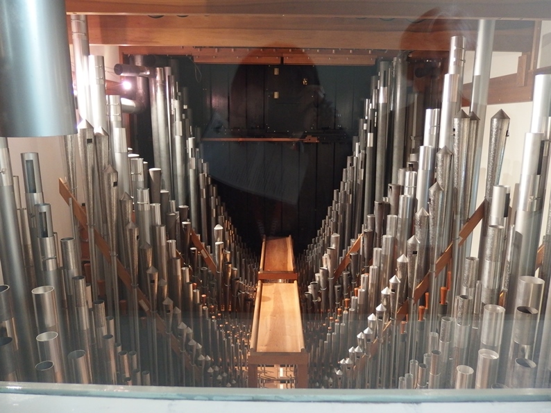 ところどころには窓が作られていてパイプが見られるようになってますが、それでも目にできるのは巨大な楽器のほんの一部。(どっかに建物内のオルガンの仕組みの3Dモデルないのかなー)