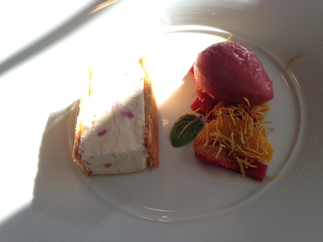 食事もよかったですがデザートがよかったですねー。アフォガートもバニラアイスにコーヒー+フランジェリコ(ヘーゼルナッツのリキュール)だったり。私が食べたのはルバーブのSemifreddoでした。ルバーブ大好き。