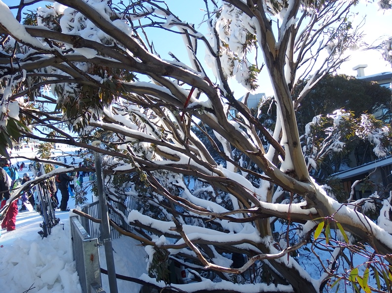 オーストラリアの山は雪山でもユーカリが生えています。寒さにもタフな木なんですね。