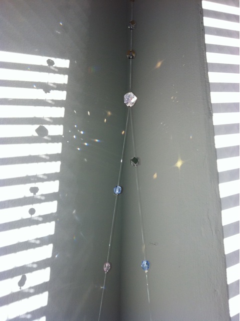 今日も結構暖かかったので今シーズン初、窓開けて仕事しました。夕方はもう8時まで明るくて、西日が窓辺のサンキャッチャー(クラムの「天体の力学」をモチーフに作った4つ、左の写真もそうですが他のもこちらに写真アップしています)に当たるのが楽しめる時期。