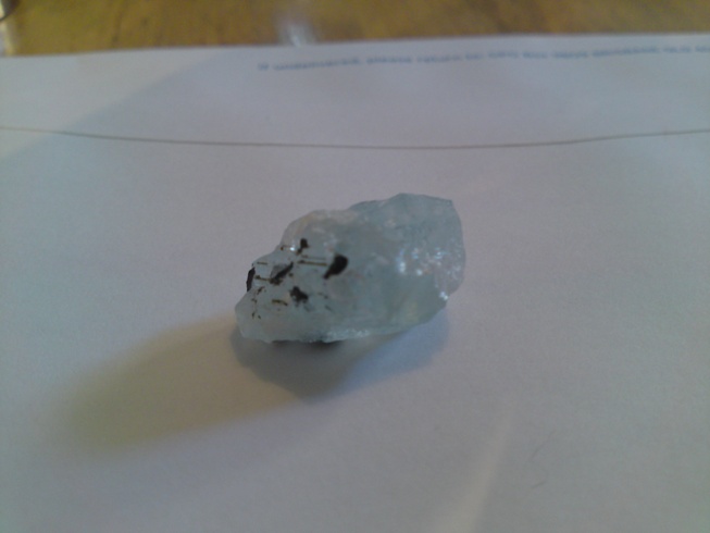 写真でも見えるように黒などのインクルージョンが多く、そのためか4ドルで買えたのですが、こんなに青よりのアクアマリンブルーが見事で、しかも見る部位によってはかなり透明度もありで良い買い物をしたと思います!(ちょっと写真では暗いですが・・・)