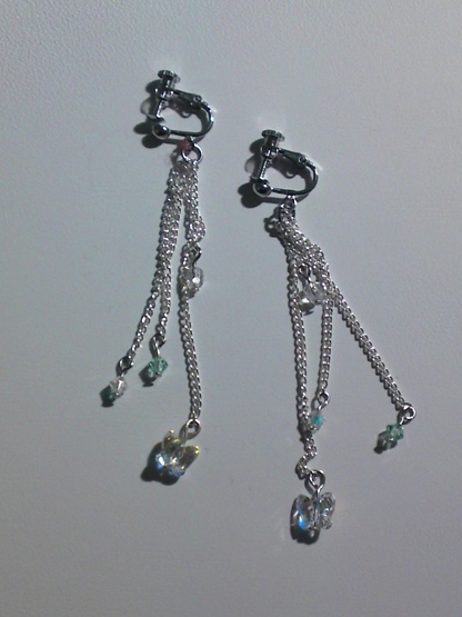 今日の作品、スワロフスキーのバタフライとその他こまごまのゆれるイヤリングです。