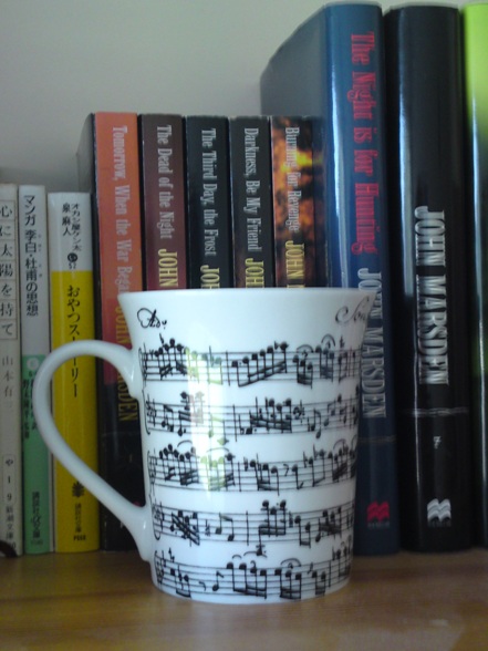 日本スーパーの近くのお店で$10で売ってました。ヴィヴァルディのオーボエソナタ(コンティニュオ付)の自筆楽譜の柄です。白黒反転のバージョンも売ってました。