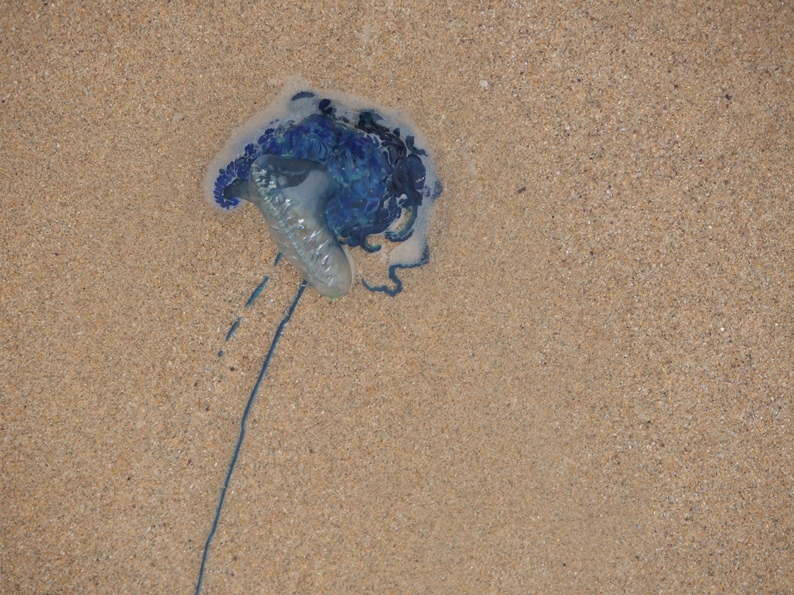 左のこいつにも要注意。カツオノエボシです。触っちゃいけないやつ。