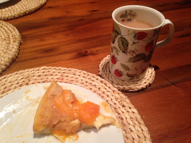 そして夕飯当番で作った蕎麦と友人が焼いたケーキ。これはおいしかったんで何度でもアップしたい。(アプリコットのクラフティです)