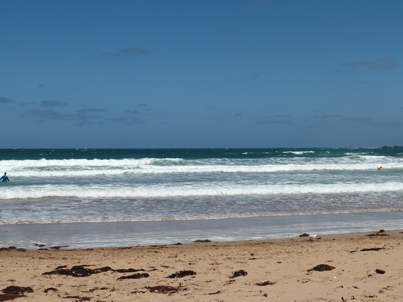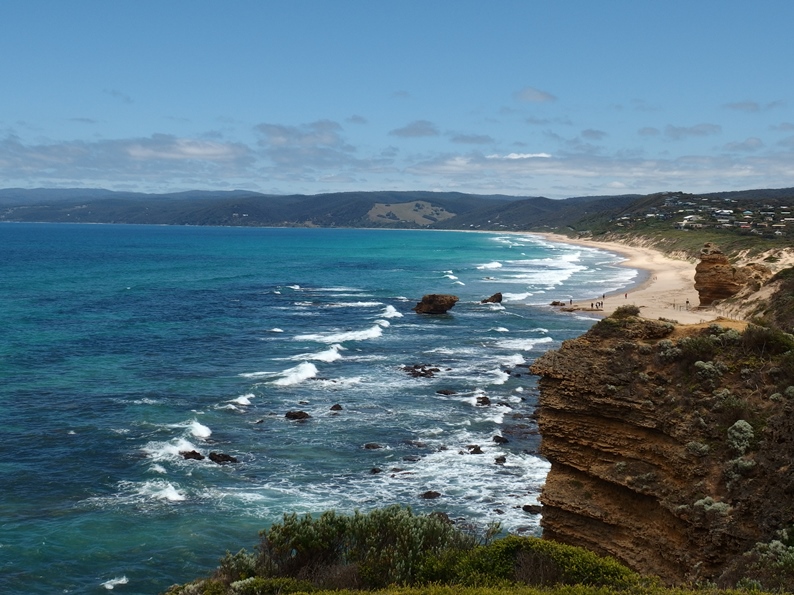 グレート・オーシャン・ロードらしい写真。ちょうど左の写真がそのロードが海沿いに西に通っていく方向を撮った写真。右はAngleseaのメインのサーフビーチ。学校やサーフスクールが団体でサーフィンしてたり個人でサーフィンしている人もいたり。ライフガードもいます。